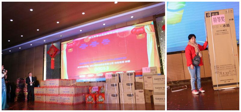 激動(dòng)人心的抽獎(jiǎng)活動(dòng)令現(xiàn)場(chǎng)氣氛達(dá)到最高潮。當(dāng)大屏幕滾動(dòng)起來(lái)的時(shí)候,臺(tái)下的觀眾緊張、興奮地倒數(shù)三二一,個(gè)個(gè)屏住呼吸,都希望幸運(yùn)降臨在自己身上。一輪又一輪,豪禮送不停。特等獎(jiǎng)1名,一等獎(jiǎng)2名,二等獎(jiǎng)10名,三等獎(jiǎng)20名,四等獎(jiǎng)200名,中獎(jiǎng)機(jī)會(huì)多多,獎(jiǎng)品有大冰箱,微波爐,電磁爐,電壓力鍋等等。到此,大家都伸長(zhǎng)脖子想知道,最終特等獎(jiǎng)大冰箱花落誰(shuí)家?沒(méi)錯(cuò),是質(zhì)量部的黃婉鸝從在場(chǎng)近600名的員工眼皮下一舉奪走了價(jià)值兩千多塊的冰箱,成為今年的幸運(yùn)兒。恭喜恭喜!